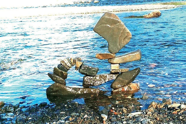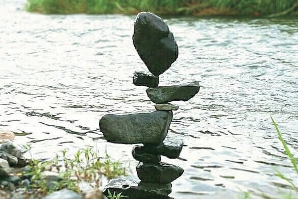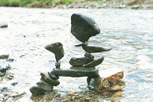 接着剤や金具などの固定グッズを使用せずに、バランスのみで石を積み上げる、ロックバランシング