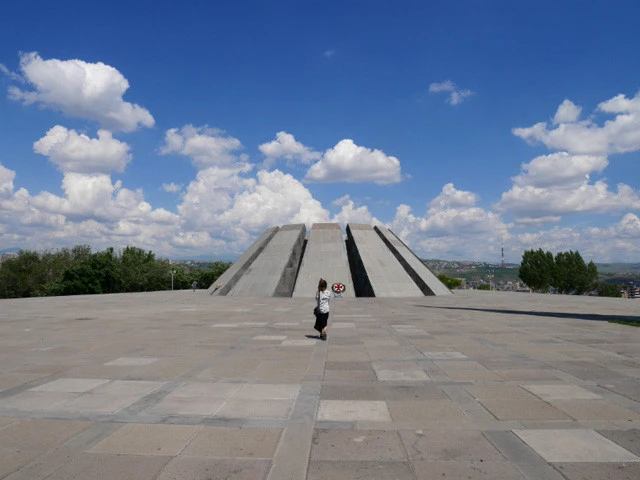 ツェツェルナカベルト(アルメニア人虐殺博物館と慰霊碑)では、青空の下とても寂しく悲しい空気が流れていた