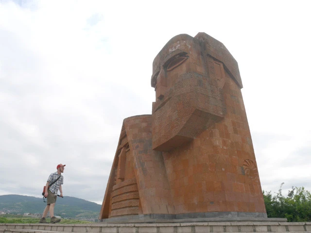 領事館で滞在ビザの申請 1967年に作られた記念碑は老いた男女の姿をしていて、ナゴルノ・カラバフの先祖を象徴している