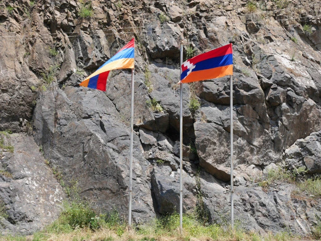 アルメニア国旗と同じ柄に白いギザギザが入っているのがナゴルノ・カラバフ国旗。白いギザギザはアルメニアから切り離された地域であることを示してるんだとか
