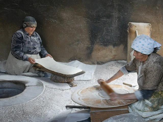 途中の休憩で寄った小さな商店やラバシュ(紙のように平たく伸ばしたパン)工房では、日本人が珍しいからであろうか、「アナタはゲストだから」と、ワインやチュルチヘラ(ナッツが入った棒状の飴)の試食に、焼き立てのラバシュは丸々2枚いただき、とにかく歓迎されていることを実感する。