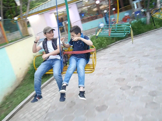 そんな話をしたかと思えば、彼らが私を連れて行ったのは街中にある小さな遊園地。空中をクルクル周るブランコのような乗り物に誘ってくれた。