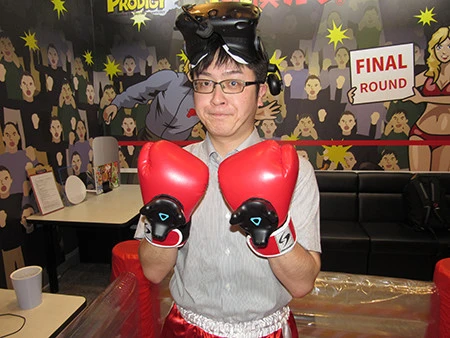 「ルールというか、遊び方は簡単です。楽曲は自由に選んでください。普通のカラオケと一緒です。そしてゴーグルとグローブをつけて、リングに立ってもらい、両手を高く頭上に掲げたら音楽がスタート。するとゴーグルの中に敵が現れますから、大声で歌いながら、とにかくこれを殴り続ける。3回倒されると負けで、最後まで歌いきれば勝ちとなります。ちなみに相手は何度でもダウンします。そのダウンの回数によって、ランキングも発表されるようになっています」