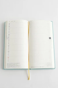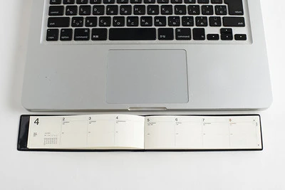 「細く、見開きで1週間の予定を書き入れるダイアリーです。予定だけ書いて、持ち歩きたい方に向けたものですね。最近、フリーアドレスの会社が増えているということで、オフィスに自分専用のスペースがない方もいらっしゃると思います。このサイズならデスクにおいても邪魔にならないし、たとえばノートPCの手前において作業もできます。昨年から登場したものですが、販売開始早々から大きな反響があったダイアリーです」