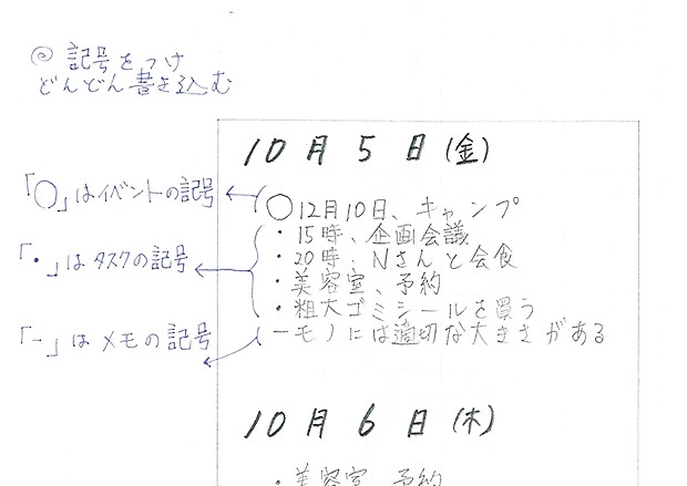 ■まずは、記号(バレット)を付けて、タスクやイベントをどんどん書き込む!