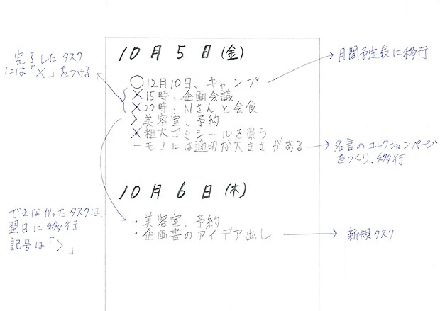 ■一日が終わると、記号を付け直し、タスクやイベントを処理する。