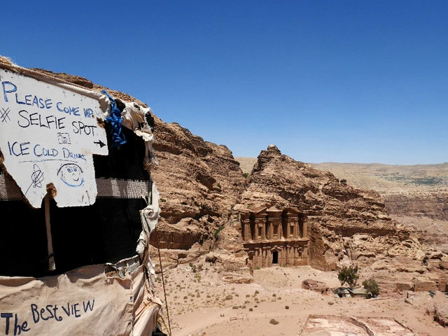 ここがヨルダンでペトラ遺跡であっても、「セルフィースポット」と書かれているのは時代だな......。
