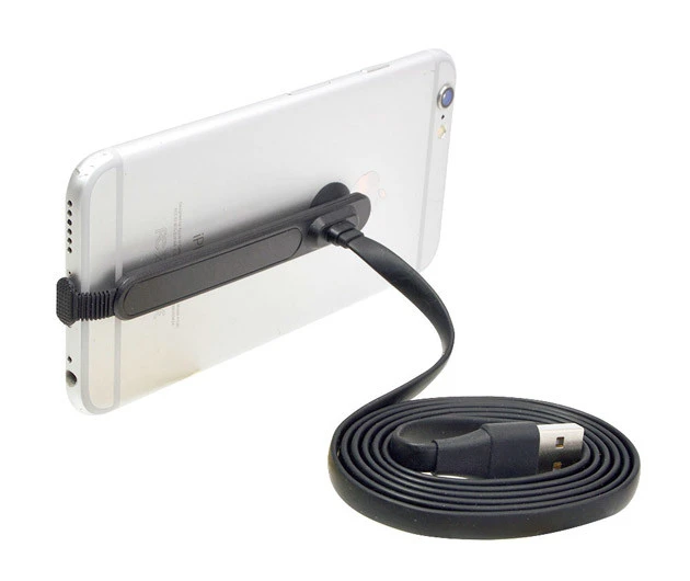 iPhoneに装着したLightningケーブルを背面に固定して、ごろ寝状態でのゲームや動画視聴中のケーブルのカラミを防止するアイデアグッズ。