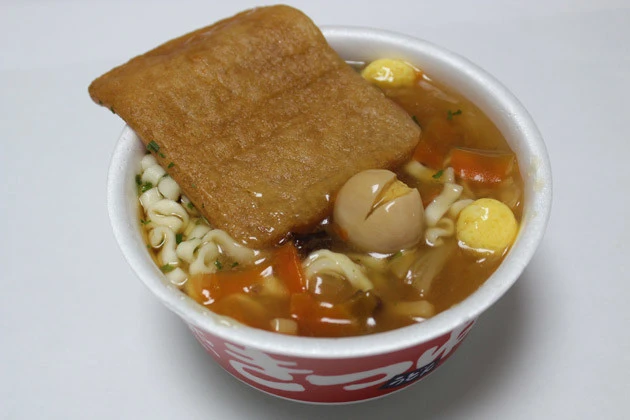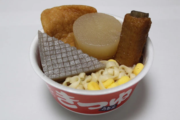 コンビニで赤いきつねを買うついでに、おでんもテイクアウト! 具の組み合わせはほぼ無限大だ。初めから入っていたお揚げさえもおでんの仲間に見えてくるぞ。