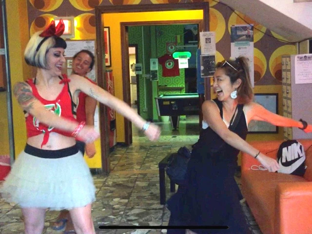 宿へ戻るとホステルスタッフと宿泊客が数人、謎のダンスを踊り盛り上がっていた。
