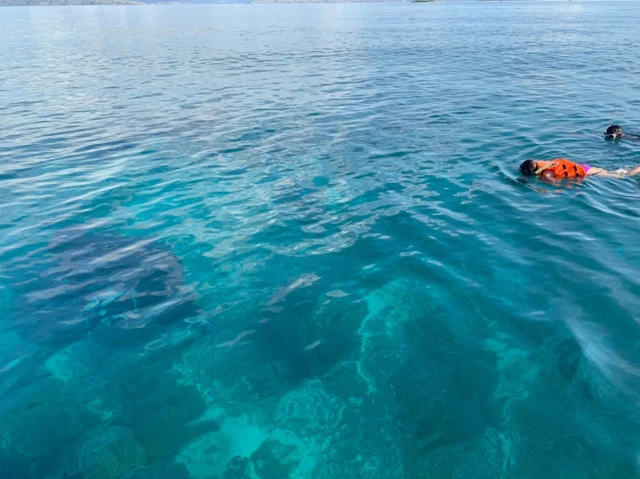 マンタとの遭遇! 左の黒い影がマンタ! 大きいよ!