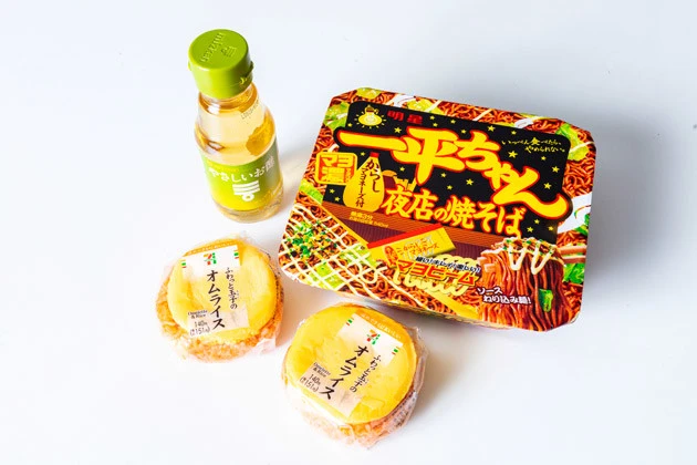・明星 一平ちゃん夜店の焼そば 1個 ・オムライスおにぎり 2個 ・酢 少々