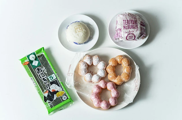 ・ポン・デ・リング 1個 ・ポン・デ・ストロベリー 1個 ・ポン・デ・シュガー 1個 ・てりやきマックバーガー 1個 ・焼き海苔 1枚 ・あんまん 1個