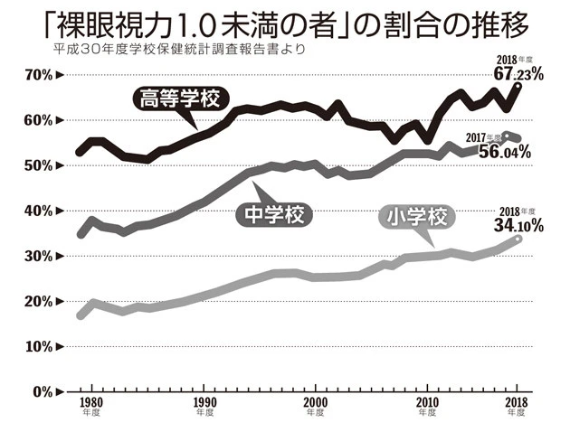 「いくつかの説があるのですが、よくいわれるのは、近くを見すぎてしまうと、毛様体筋(もうようたいきん/目のピントを調節する筋肉)が緊張状態になって『仮性近視』(仮の近視状態)になります。これはきちんと目を休めれば元に戻るのですが、その緊張状態を継続してしまうことで本物の近視になってしまう―というのが有力な説です」