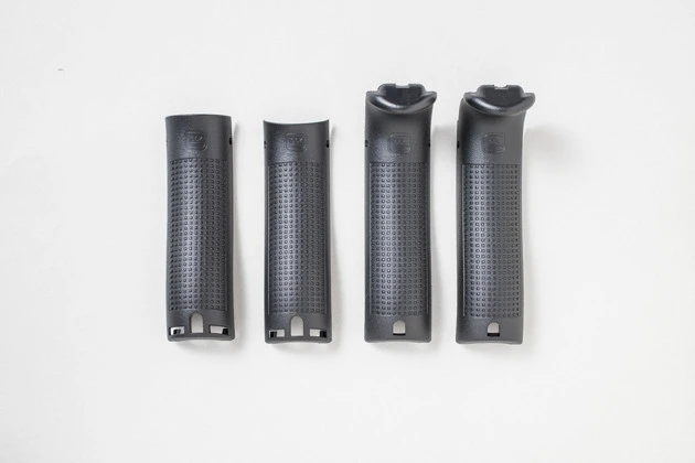 4種類のバックストラップが付属。これに交換すると握り心地が激変! また、実銃から採寸して製作されたことで、実銃用の各種樹脂ホルスターも使用できる。