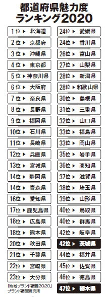 来年の魅力度ランキング、茨城が最下位に"返り咲く"のか? 栃木がその座を守るのか? ちょっと楽しみだ。