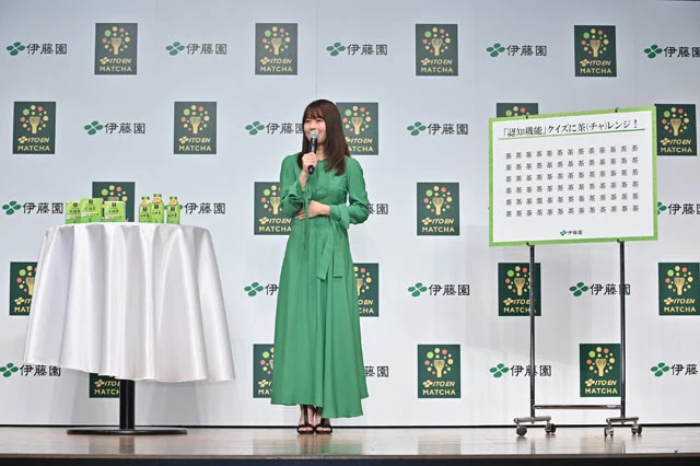 イベントでは、「茶」の文字がたくさん書かれたボードから「茶」以外の文字を見つける認知機能クイズにも挑戦。5秒以内という制限時間に不安そうにしつつも、一瞬で「葉」の文字を見つけた有村は、「(抹茶を飲んでるから)研ぎ澄まされてたんですかね」と安堵の笑顔を浮かべた。