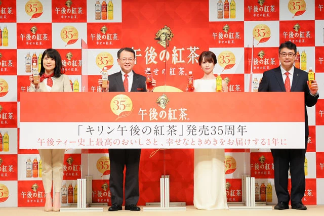 「『キリン 午後の紅茶』発売35周年 ブランド戦略発表会」が4日に行なわれ、深田恭子が発売35周年ブラントアンバサダーに就任。深田は発売当時の『キリン 午後の紅茶』に「今でもおいしく感じられる」と笑顔で語った。