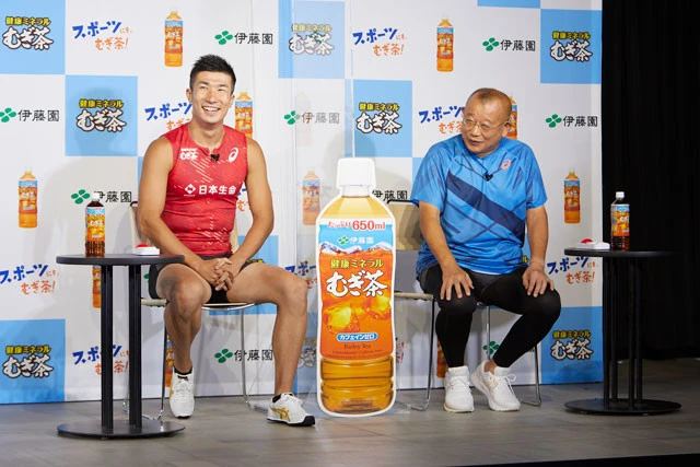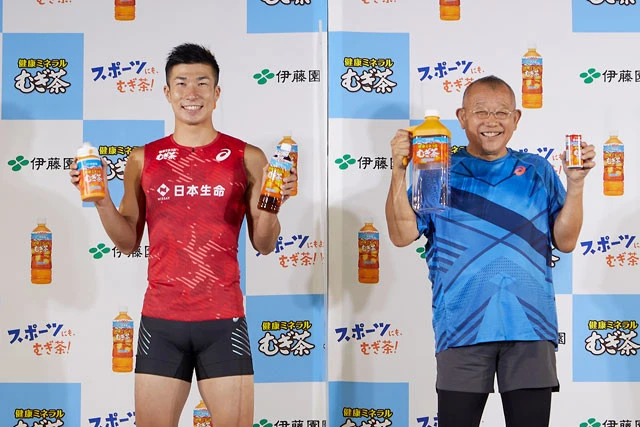 23日、都内で「伊藤園 健康ミネラルむぎ茶『スポーツにも、むぎ茶!キャンペーン』発表会」が行なわれ、笑福亭鶴瓶と陸上選手の桐生祥秀が登壇。運動不足の鶴瓶はトレーニングでSOSを求め、会場を笑わせた。