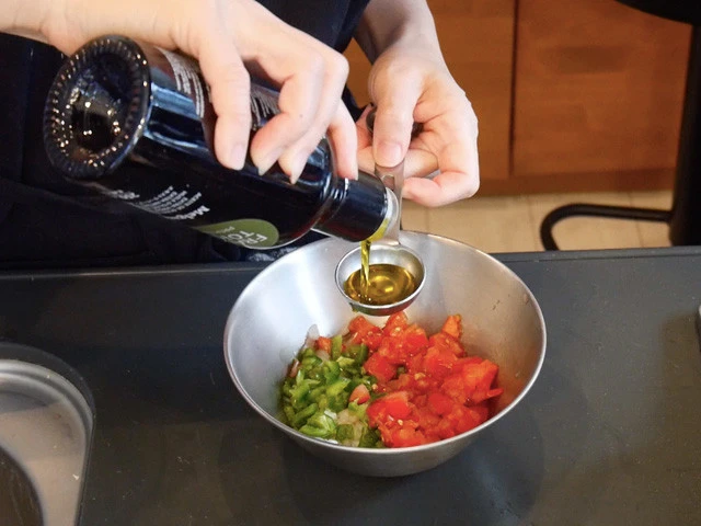 9.みじん切りした野菜に、ホワイトビネガー、オリーブオイルを加えて混ぜる。