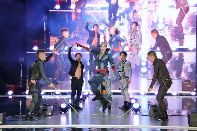 イベントが始まると、オープニングから上下ともデニム姿の土屋が登場。プロダブルダッチチーム「REG STYLE」とともに行なったパフォーマンスでは縄を軽快に飛び、アクロバットを披露。デニムながら高いストレッチ性をアピールした。