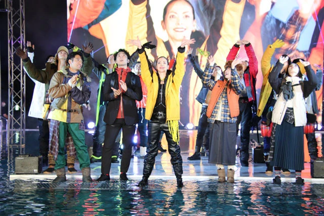 都内で「ワークマン 水上"Night"過酷ファッションショー」が9月30日に行なわれ、土屋アンナがゲストとして出演。激しい雨に打たれる特殊な状況を楽しんだ。