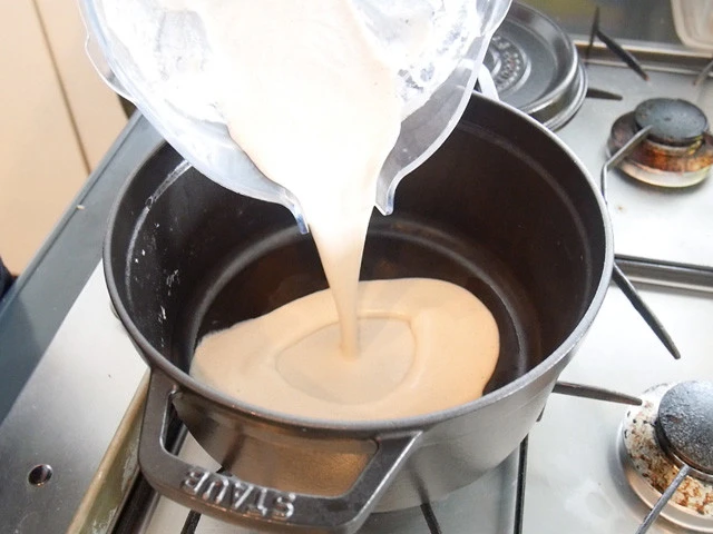 9.滑らかなスープ状になったら鍋に戻し温め直す。(裏ごしするとより滑らかに)