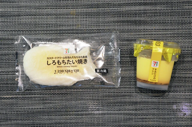 ・しろもちたい焼き(セブンプレミアム) 1個 ・きみだけのプリン(セブンプレミアム) 1個