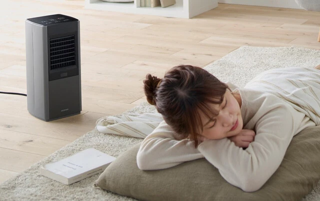 本体サイズは幅175mm、奥行き191.5mm。これまでの製品に比べ大幅に小型ながら、リビングや寝室の暖房にも対応する出力を実現。約2.7kgと軽量なので、トイレや脱衣所がちょっと寒いときに即移動できるのもポイント。
