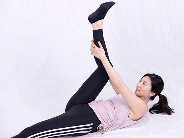 1.仰向けになり、片方の膝の裏かふくらはぎあたりで両手を組む