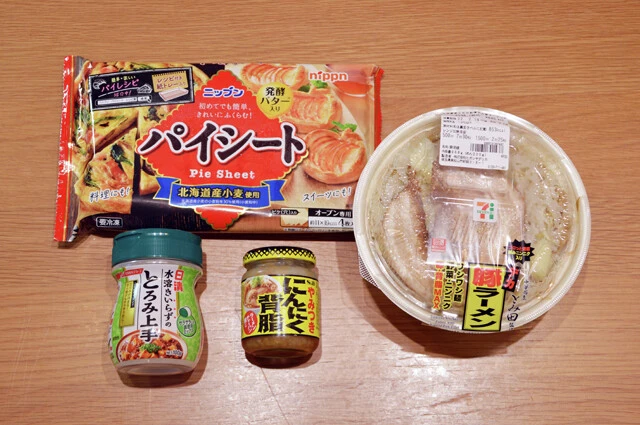 今回の"バカレシピ"は、セブン-イレブンの豚ラーメンをパイシートで包んだ「にんにく背脂マシマシ! 豚ラーメンパイ」!