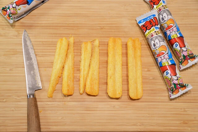 プリッツをうまい棒に挿すことでドッキングが可能。うまい棒の中に入ったプリッツのハードな食感もアリ。長さの限界に挑戦せよ!