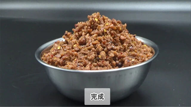 谷畑 ミンチ肉です。「麺屋はなび」では火力の出る鉄鍋を使い、鉄鍋でしか出せない香りがします。それならキンレイも鉄鍋を使ってミンチ肉を作ろうと。