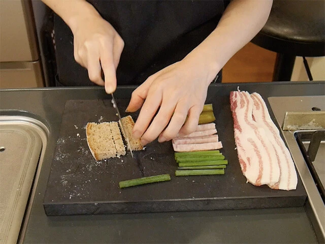 2.パンチェッタで具を巻いていく