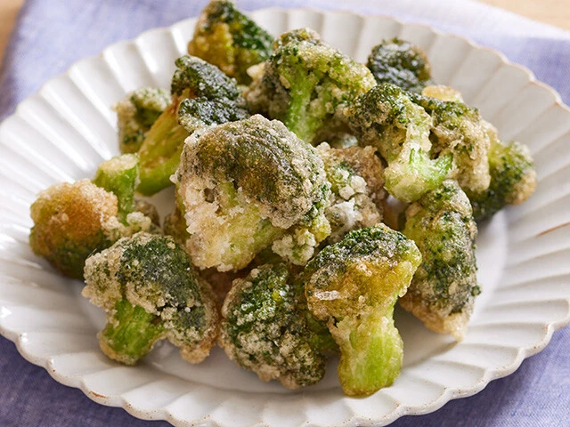 ブロッコリーは洗った後、小房に分け、ゆでて火を通し、熱いうちに麺つゆ、水とあえて20分ほど漬けておく。その後、汁気をきってポリ袋に入れ、片栗粉を加えて全体によくなじませる。深めのフライパンに揚げ油を深さ2㎝くらいになるまで注ぎ、加熱してブロッコリーを投入。時折ブロッコリーを返しながら、2分~2分30秒ほど揚げれば完成