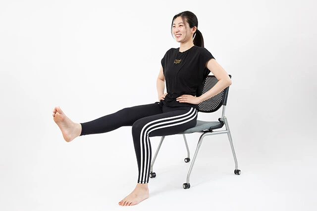 1.イスに座り、両手を腰にあてる
