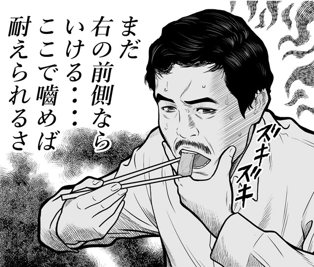 すると、左奥も痛み出したので、次は右の前側で恐る恐る噛む。そこもダメになって、今は左の前側で噛んでいますが、いずれ前歯だけで挑戦することになるでしょう」