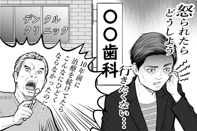 今、また歯が痛み出しているのですが、その歯医者に行くと『なぜあのとき予約をすっぽかした』と怒られるのでは、と怖くなって行けず、別のところに行っても『こんな治療途中で状態が悪くなった歯をうちに見せられても困る』と怒られるのではと思い、どこにも行けずです」