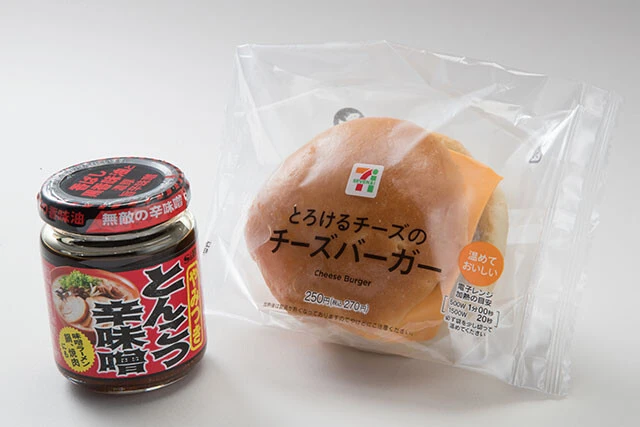 とんこつ辛味噌チーズバーガー【チーズバーガー】バーガーの間に塗るだけ。シンプルな味つけのバーガーにトッピングすると手堅くハマる