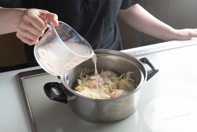 ③和風だしを加えて沸騰したらふたをして20分煮込む。