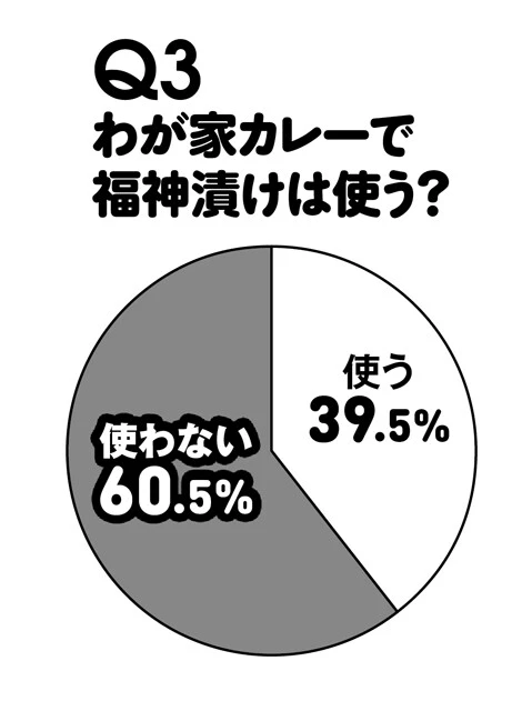 次は、薬味や調味料に対する調査。添え物の定番、福神漬けは4割程度、らっきょうは2割の使用にとどまった。