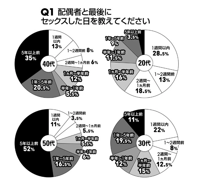 「3年で愛が情に変わるとよくいうが、そのとおりの結果だと思います。カップルだと2年以上交際していても半数以上が2週間以内にセックスをしている。夫婦のレスの大きな要因は『いつでもできる』という安心感。絶対的な信頼関係がよくないほうに働いているのかもしれません」