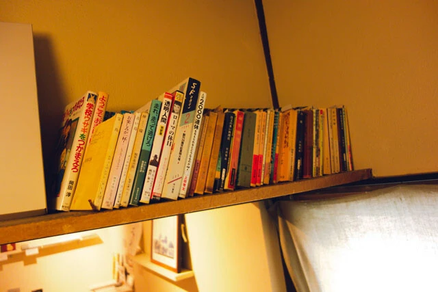 ふたりが運営に関わっている「そぞろ書房」の非売品棚には、ふたりの趣味が感じられる本と事業のための本が並んでいる