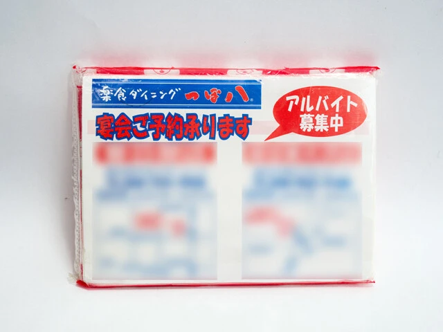ポケットティッシュは長らく無料で配布されてきました。平成に多かった広告は流行し始めた携帯電話ショップ、チェーン居酒屋、コンビニなどなど。時代を映す鏡でした(山下)