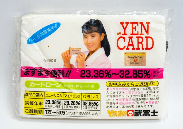 そんな広告ティッシュで特に多かったのが、消費者金融のものです。バブル崩壊後の不景気の中、自動契約機が登場し、テレビCMも盛んに放送され、その象徴的な存在だったのが武富士。