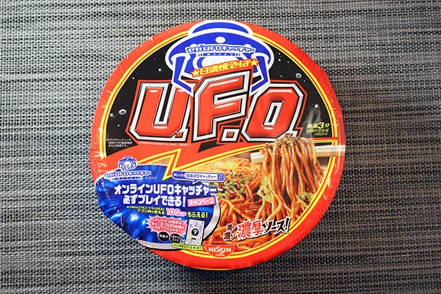 野島 使うのはこのカップだけです。中身は助手くんが食べておいてくれ。で、日清焼そばU.F.O.を冷やしで作ったらカップに移し、ソース、ポテサラ、ふりかけを入れてシェイク! ポテサラが麺にどっぷりと絡みついてメチャクチャウマい!