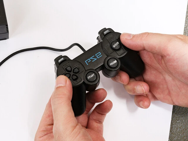中でも個人的にヒットしたのが、どう見てもプレステ2というデザイン。コントローラーで遊ぶのはいいのですが画面がない。どこにあるかというと、光学ディスクのトレーを開くと、トレー内に画面があるという謎の仕様です。