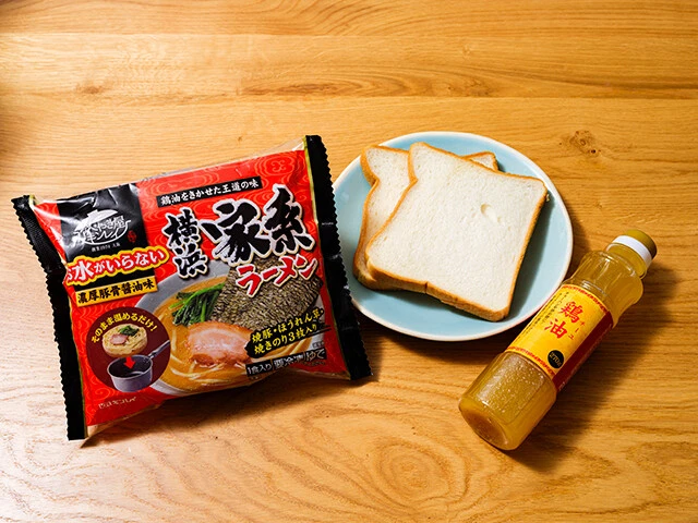 野島 続いて食パンに鶏油をたっぷり吸わせ、焼きのりと一緒に麺を挟んでホットサンドメーカーで焼けば完成!