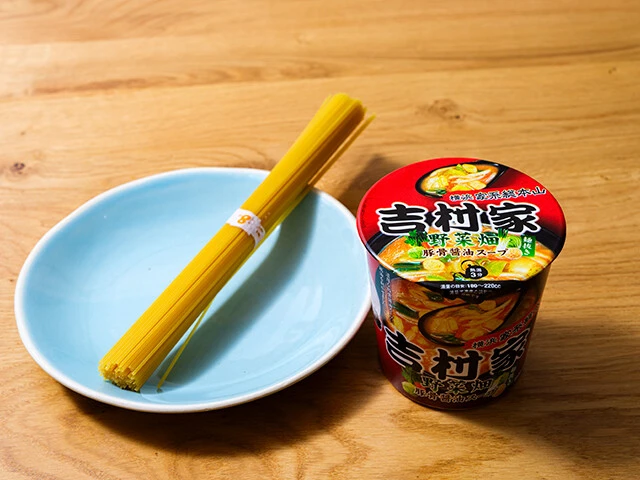 野島 最後はローソンのカップスープ「吉村家 野菜畑豚骨醤油スープ」で味つけしたペペロンチーノを作りましたよ。