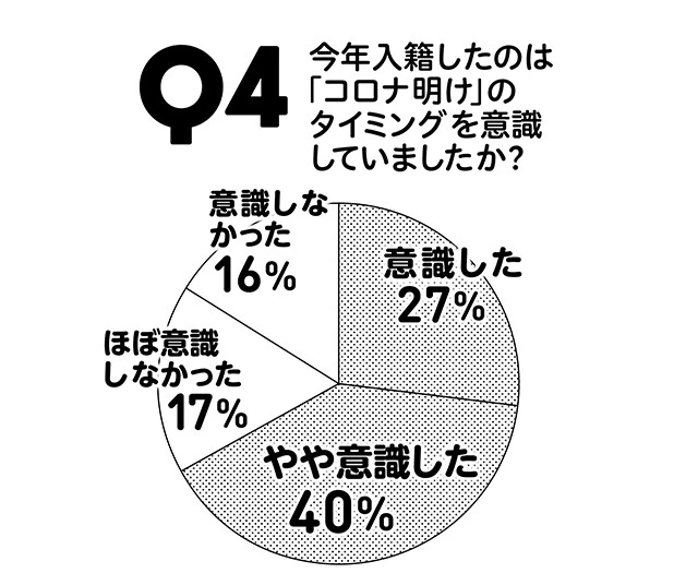 では、今年入籍した人は、コロナ明けのタイミングを意識していたのか?という問いには、およそ7割が「意識した」「やや意識した」と回答。